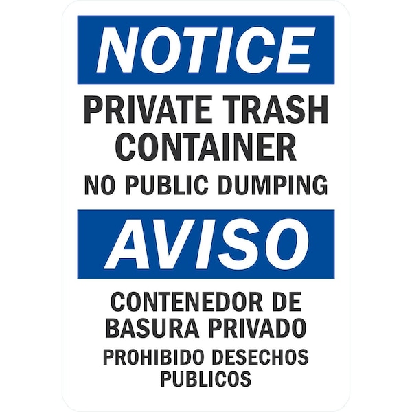 Private Trash Container, No Public Dumping / Contenedor Priv, 7x10, Non-Reflective, White