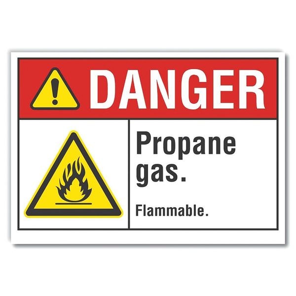 Propane Danger Reflective Label, 5 in H, 7 in W, Horizontal Rectangle, LCU4-0013-RD_7X5