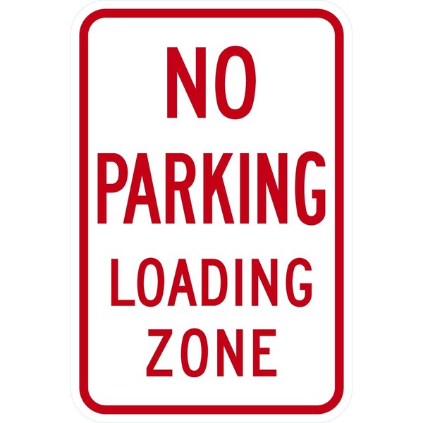 R7-6, No Parking Loading Zone, 12x18, High Intensity Prismatic, White