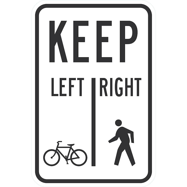 R9-7, Keep Left/Right To (Bike Sym & Ped Sym), 12x18, High Intensity Prismatic, White