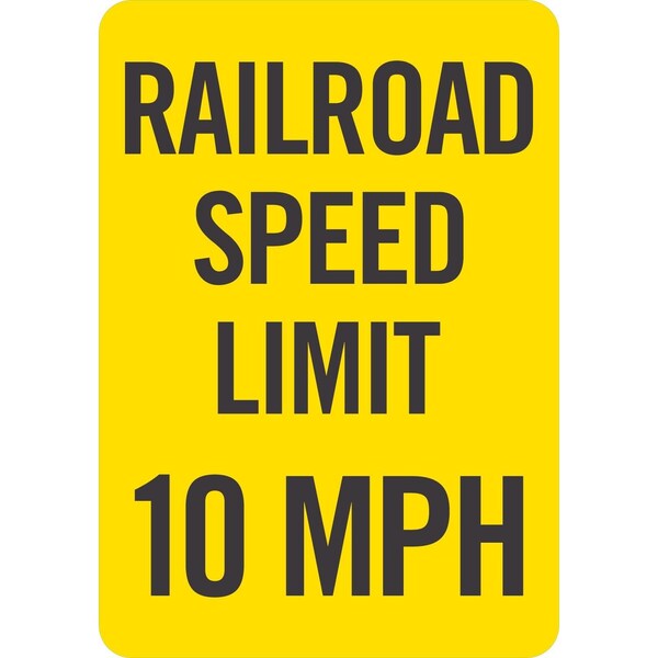 Railroad Speed Limit 10 MPH, 7x10, Non-Reflective, Yellow