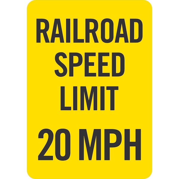 Railroad Speed Limit 20 MPH, 10x14, Non-Reflective, Yellow