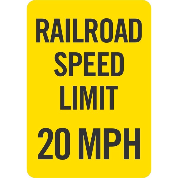Railroad Speed Limit 20 MPH, 7x10, Non-Reflective, Yellow