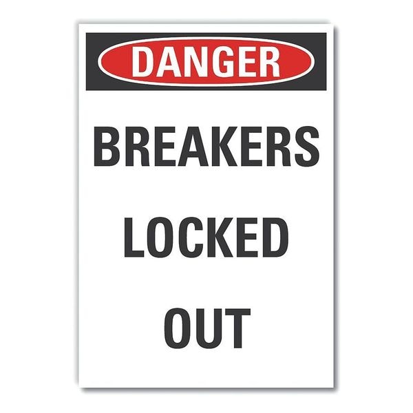 Electrical Panel Danger Reflective Label, Vertical Rectangle, Number of Printed Sides 1, English, Sign Format Traditional OSHA, Sign Legend Breakers Locked Out, Sign Legend Background Color White, Sign Legend Style Text