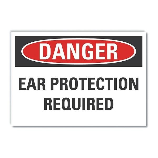 Danger Sign, Horizontal Rectangle, Number of Printed Sides 1, English, Sign Format Traditional OSHA, Sign Legend Ear Protection Required, Sign Legend Background Color White, Sign Legend Style Text