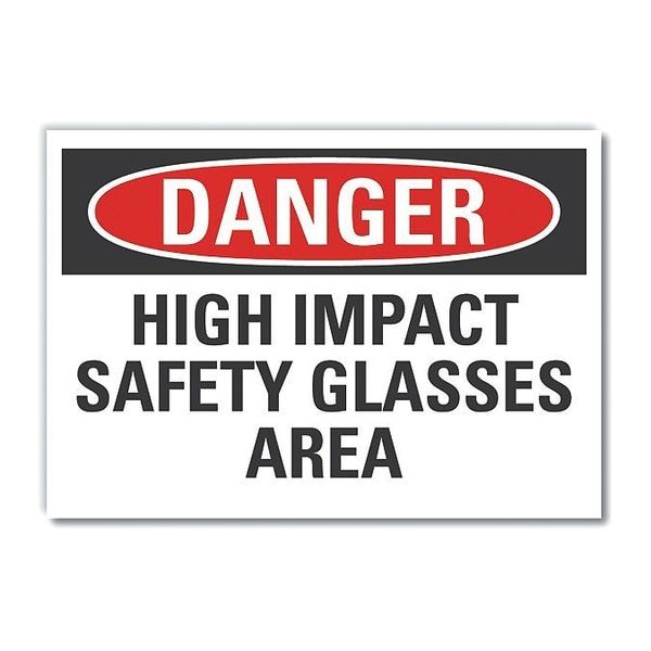 Eye Danger Reflective Label, Vertical Rectangle, Number of Printed Sides 1, English, Sign Format Traditional OSHA, Sign Legend High Impact Safety Glasses Area, Sign Legend Background Color White, Sign Legend Style Text