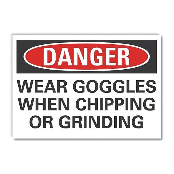Eye Danger Reflective Label, Horizontal Rectangle, Number of Printed Sides 1, English, Sign Format Traditional OSHA, Sign Legend Wear Goggles When Chipping Or Grinding, Sign Legend Background Color White, Sign Legend Style Text