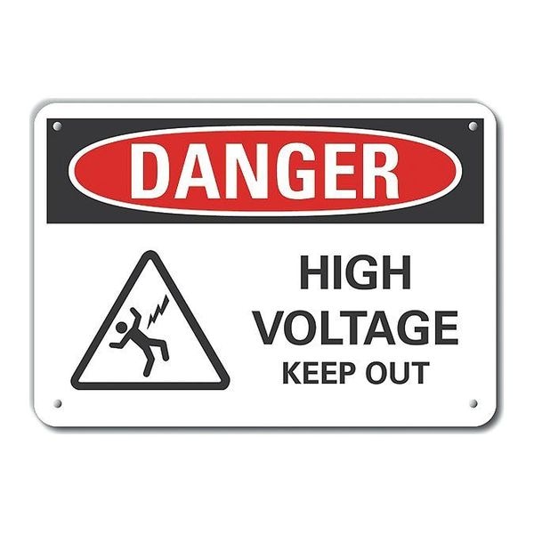 Danger Sign, Horizontal Rectangle, Number of Printed Sides 1, English, Sign Format ANSI/OSHA Format, Sign Legend High Voltage Keep Out, Sign Legend Background Color White, Sign Legend Style Symbol and Text