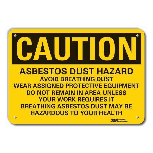 Reflective Asbestos Caution Sign, Horizontal Rectangle, Number of Printed Sides 1, English, Sign Format Traditional OSHA, Sign Legend Asbestos Dust Hazard Avoid Breathing Dust Wear Assigned Protective Equipment Do Not Remain In Area Unless Your Work Requires It Breathing Asbestos Dust May Be Hazardous To Your Health, Sign Legend Background Color Yellow, Sign Legend Style Text