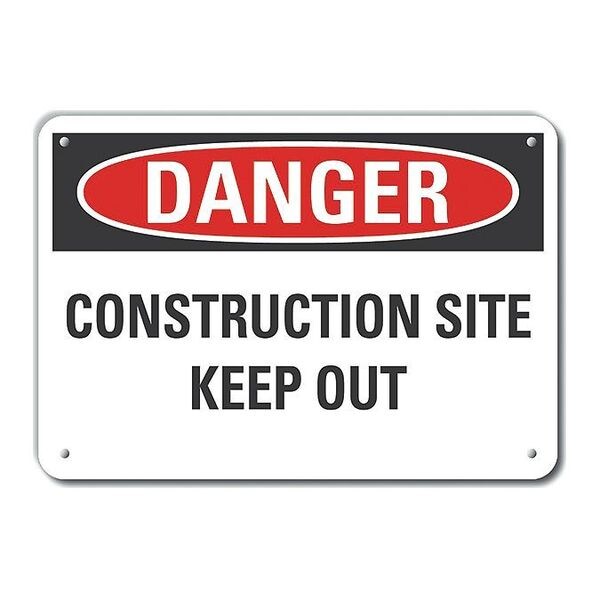 Reflective Construction Area Danger Sign, Vertical Rectangle, Number of Printed Sides 1, English, Sign Format Traditional OSHA, Sign Legend Construction Site Keep Out, Sign Legend Background Color White, Sign Legend Style Text