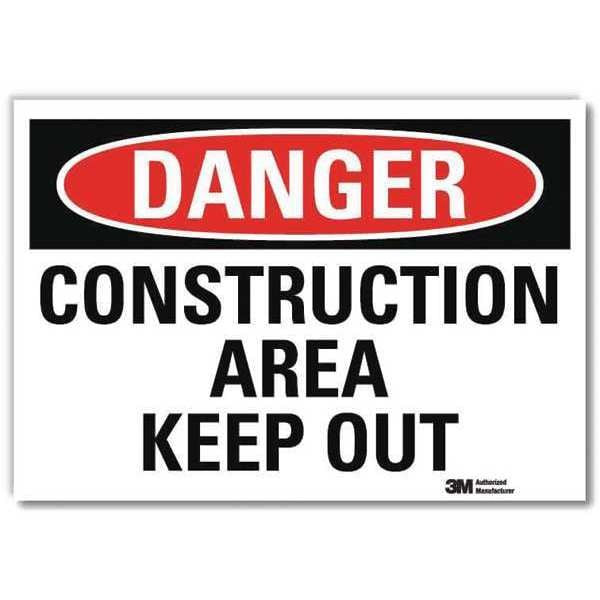 Reflective Construction Area Label, Horizontal Rectangle, Number of Printed Sides 1, English, Sign Format Traditional OSHA, Sign Legend Construction Area Keep Out, Sign Legend Background Color White, Sign Legend Style Text