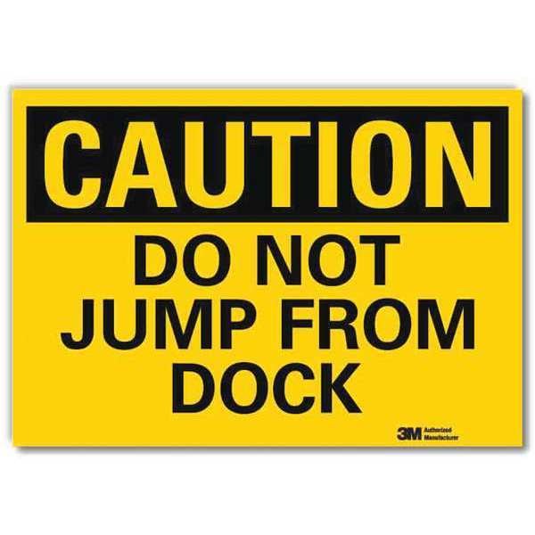 Reflective Facility Information Label, Vertical Rectangle, Number of Printed Sides 1, English, Sign Format Traditional OSHA, Sign Legend Do Not Jump From Dock, Sign Legend Background Color Yellow, Sign Legend Style Text
