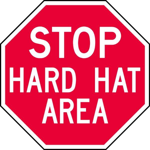 Reflective Hard Hat Stop Sign, 6 in Height, 6 in Width, Aluminum, Octagon, English