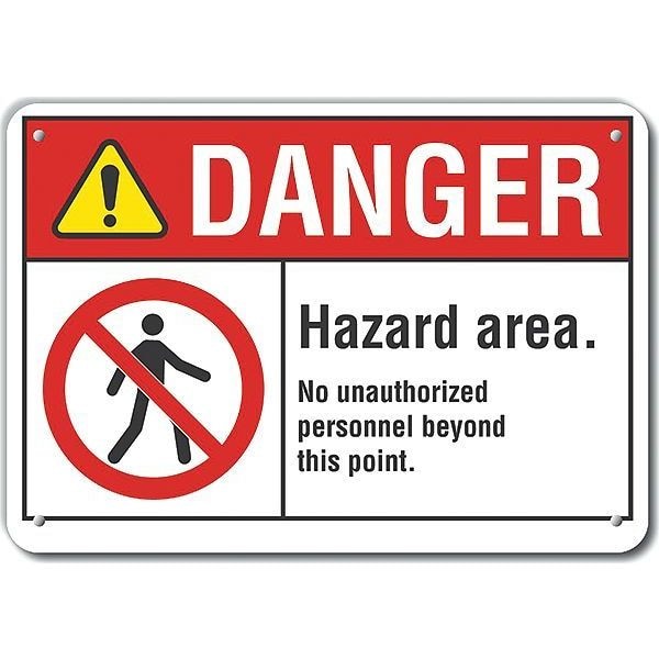 Reflective Hazard Area Danger Sign, Vertical Rectangle, Number of Printed Sides 1, English, Sign Format ANSI/OSHA Format, Sign Legend Hazard Area. No Unauthorized Personnel Beyond This Point., Sign Legend Background Color White, Sign Legend Style Symbol and Text