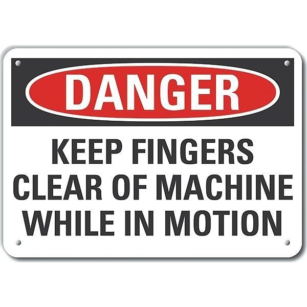 Reflective Keep Hands Clear Danger Sign, Vertical Rectangle, Number of Printed Sides 1, English, Sign Format Traditional OSHA, Sign Legend Keep Fingers Clear Of Machine While In Motion, Sign Legend Background Color White, Sign Legend Style Text