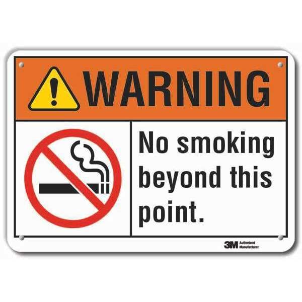 Reflective No Smoking Warning Sign, Vertical Rectangle, Number of Printed Sides 1, English, Sign Format ANSI/OSHA Format, Sign Legend No Smoking Beyond This Point, Sign Legend Background Color White, Sign Legend Style Symbol and Text