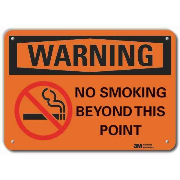 Reflective No Smoking Warning Sign, Vertical Rectangle, Number of Printed Sides 1, English, Sign Format Traditional OSHA, Sign Legend No Smoking Beyond This Point, Sign Legend Background Color Orange, Sign Legend Style Symbol and Text