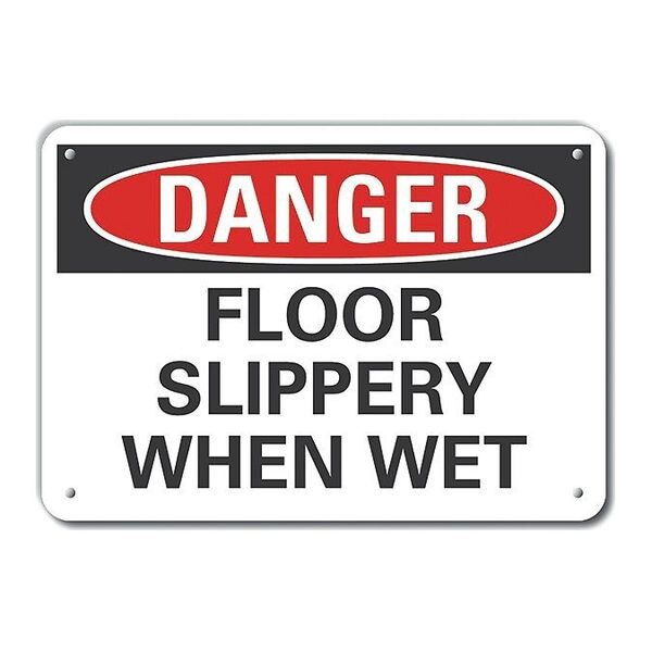 Reflective Slippery Floor Danger Sign, 7 in Height, 10 in Width, Aluminum, Vertical Rectangle