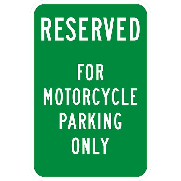 Reserved For Motorcycle Parking Only, 12x18, Engineer Grade, Green