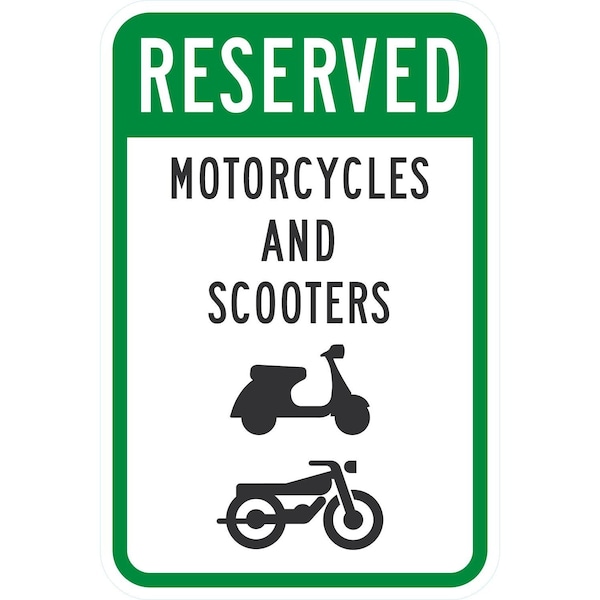 Reserved Motorcycles And Scooters (W/Sym), 12x18, High Intensity Prismatic, White