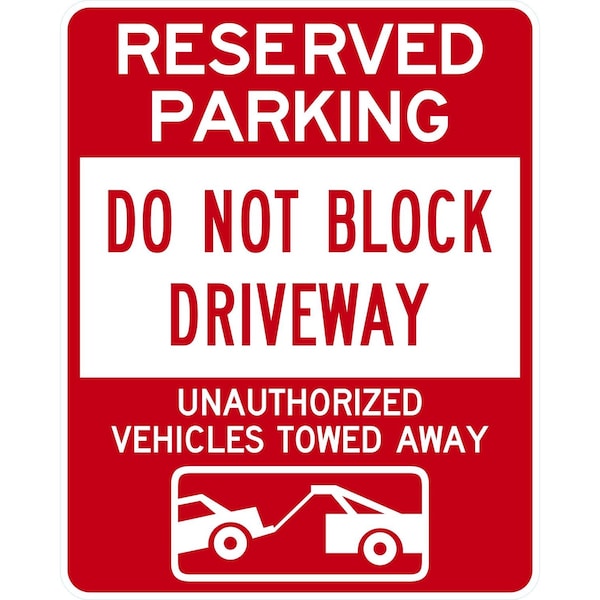 Reserved Parking Do Not Block Driveway Unauthorized, 24x30, Engineer Grade, White