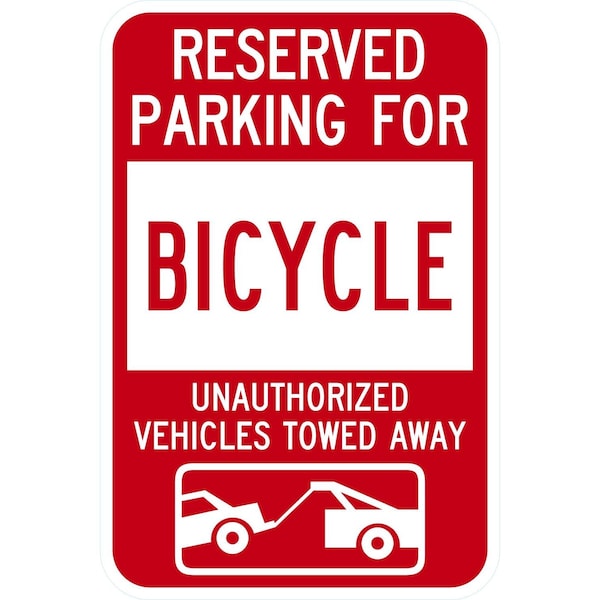 Reserved Parking For Bicycle Unauthorized Vehicles Towed Awa, 12x18, Engineer Grade, White