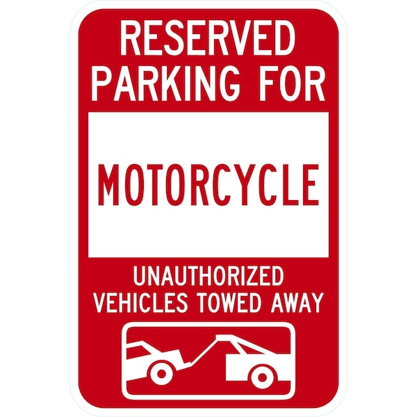 Reserved Parking For Motorcycle Unauthorized Vehicles Towed, 12x18, Engineer Grade, White