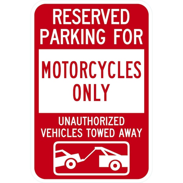 Reserved Parking For Motorcycles Only Unauthorized Vehicles, 12x18, Engineer Grade, White