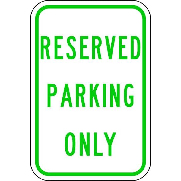 Reserved Parking Sign, Height 18 in, Width 12 in, Sign Material Aluminum, Sign Mounting Style Mounting Holes, Printed Language English, Sign Shape Vertical Rectangle