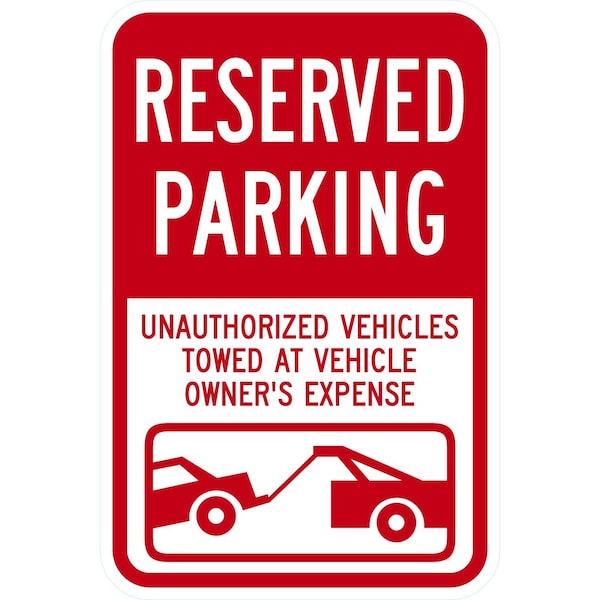Reserved Parking Unauthorized Vehicles Towed At Owner, 12x18, Engineer Grade, White