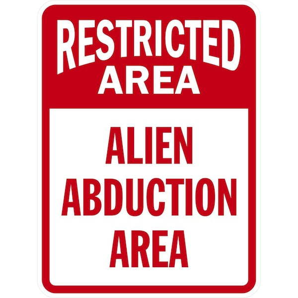 Restricted Area Alien Abduction Area, 18x24, Non-Reflective, White