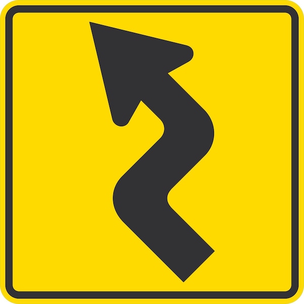 Right Reverse Turn (with Sharp Turn Symbol), 36x36, Engineer Grade, Yellow