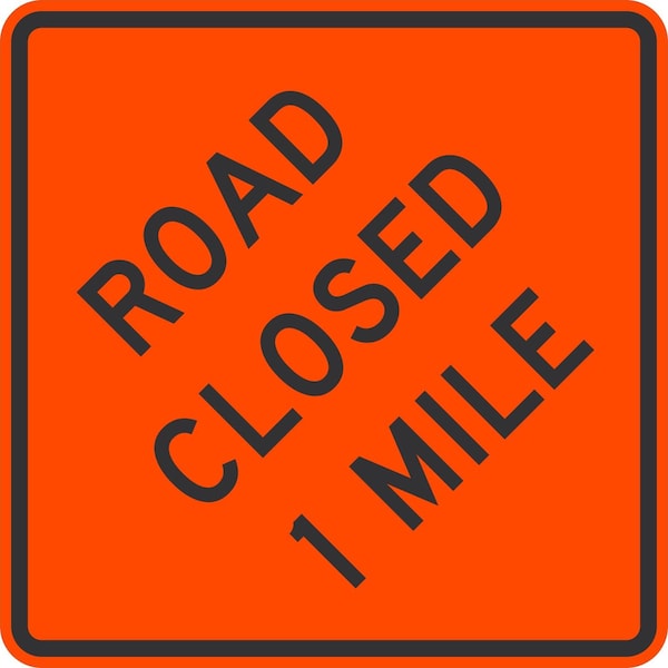 Road Closed 1 Mile, 30x30, Diamond Grade, Orange