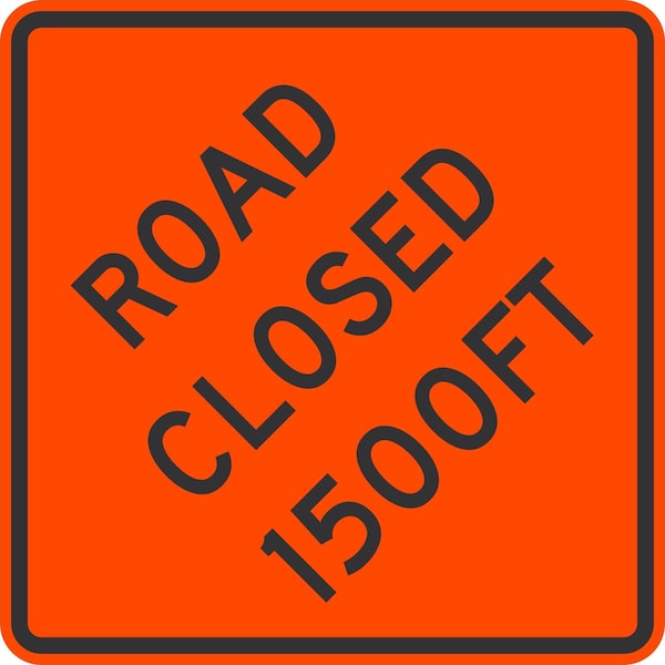 Road Closed 1500FT, 30x30, Diamond Grade, Orange