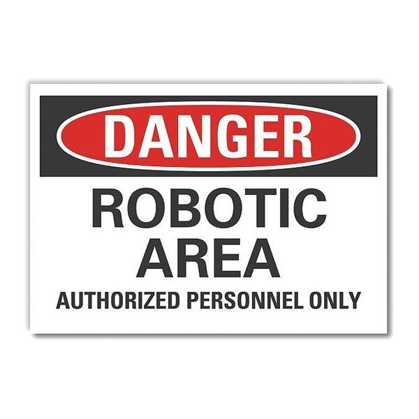 Robot Area Danger Label, Horizontal Rectangle, Number of Printed Sides 1, English, Sign Format Traditional OSHA, Sign Legend Robotic Area Authorized Personnel Only, Sign Legend Background Color White, Sign Legend Style Text