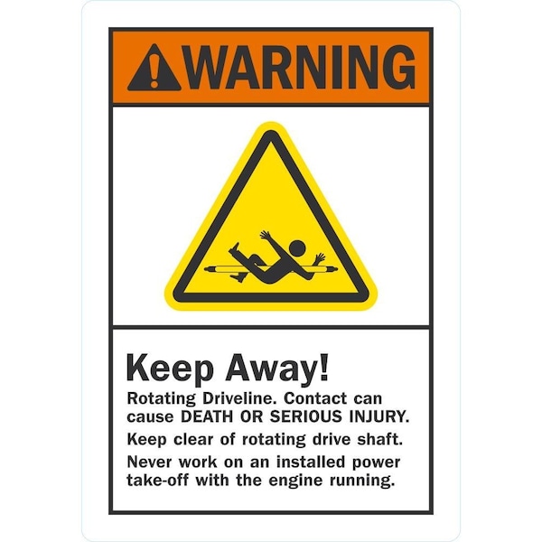 Rotating Driveline Can Cause DEATH, 7x10, Non-Reflective, White
