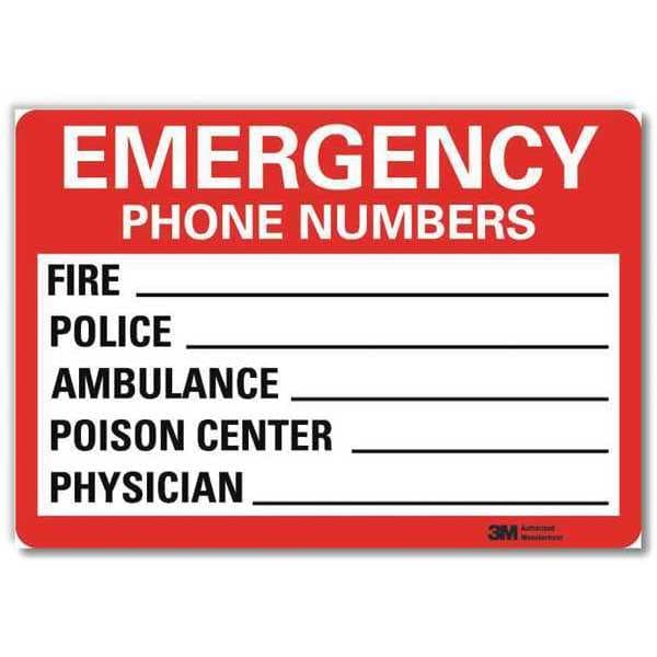 Safety Decal, Horizontal Rectangle, Number of Printed Sides 1, English, Sign Format Traditional OSHA, Sign Legend Emergency Phone Numbers Fire ___Police ___, Sign Legend Background Color White, Sign Legend Style Text