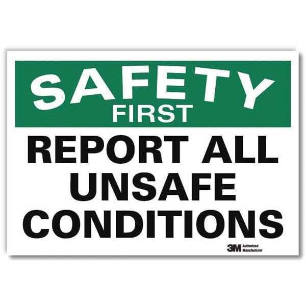 Safety Decal, Vertical Rectangle, Number of Printed Sides 1, English, Sign Format Traditional OSHA, Sign Legend Report All Unsafe Conditions, Sign Legend Background Color White, Sign Legend Style Text