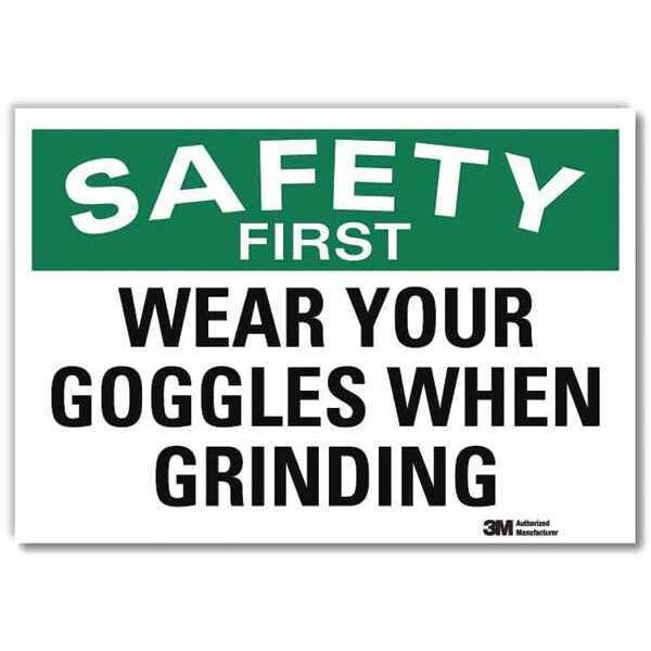 Safety Decal, Vertical Rectangle, Number of Printed Sides 1, English, Sign Format Traditional OSHA, Sign Legend Wear Your Goggles When Grinding, Sign Legend Background Color White, Sign Legend Style Text