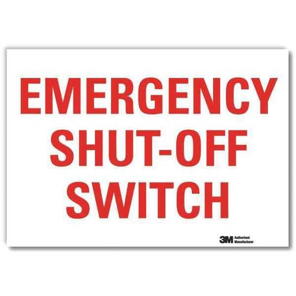 Safety Decal, Horizontal Rectangle, Number of Printed Sides 1, English, Sign Legend Emergency Shut-Off Switch, Sign Legend Background Color White, Sign Legend Style Text