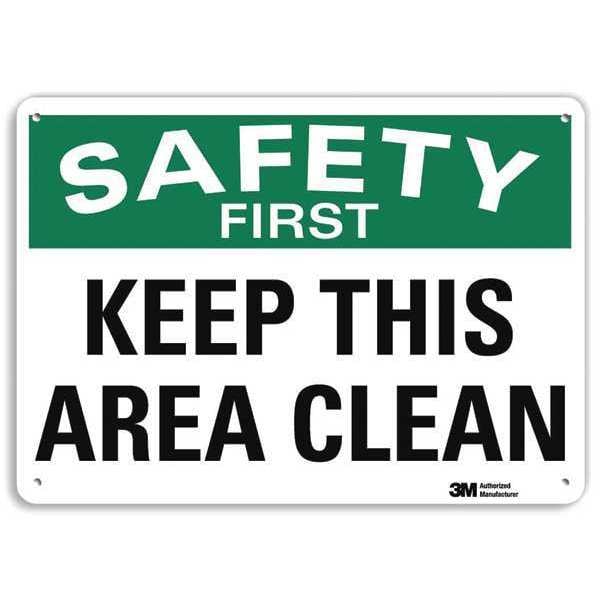 SAFETY FIRST KEEP THIS AREA CLEAN, 7 in x 10 in, Vertical Rectangle, Aluminum, U7-1215-NA_10x7