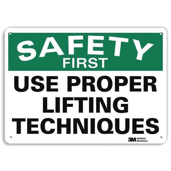SAFETY FIRST USE PROPER LIFTING TECHNIQUES, 7 in x 10 in, Aluminum, U7-1261-NA_10x7