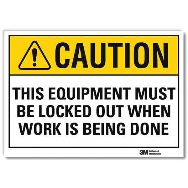 Safety Sign, Horizontal Rectangle, Number of Printed Sides 1, English, Sign Format ANSI/OSHA Format, Sign Legend This Equipment Must Be Locked Out When Work Is Being Done, Sign Legend Background Color Yellow, Sign Legend Style Symbol and Text