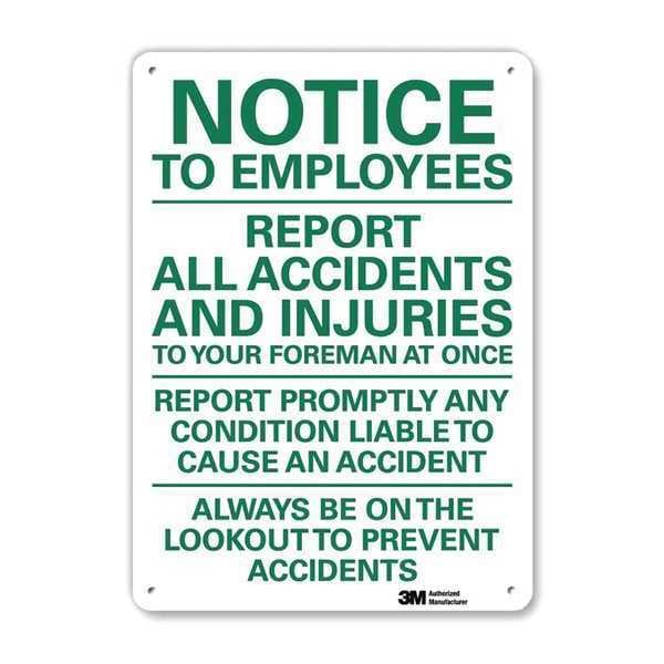 Notice To Employees Report All Accidents And Injuries To Your Foreman At Once