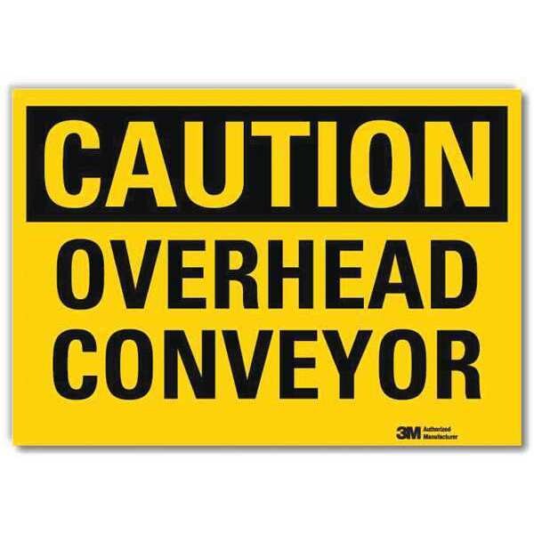 Safety Sign, Horizontal Rectangle, Number of Printed Sides 1, English, Sign Format Traditional OSHA, Sign Legend Overhead Conveyor, Sign Legend Background Color Yellow, Sign Legend Style Text