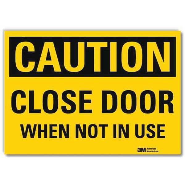 Safety Sign, Horizontal Rectangle, Number of Printed Sides 1, English, Sign Format Traditional OSHA, Sign Legend Close Door When Not In Use, Sign Legend Background Color Yellow, Sign Legend Style Text