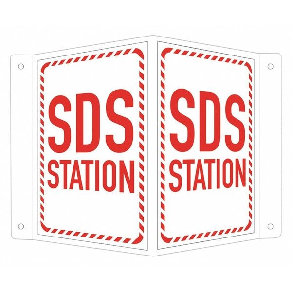 Safety Sign, V-Shape Projection, Number of Printed Sides 1, English, Sign Format Other Format, Sign Legend SDS Station, Sign Legend Background Color White, Sign Legend Style Text
