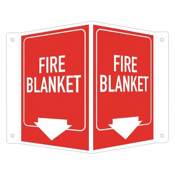 Safety Sign, V-Shape Projection, Number of Printed Sides 1, English, Sign Legend Fire Blanket (W Down Arrow), Sign Legend Background Color Red, Sign Legend Style Symbol and Text