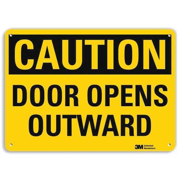 Safety Sign, Vertical Rectangle, Number of Printed Sides 1, English, Sign Legend Door Opens Outward, Sign Legend Background Color Yellow, Sign Legend Style Text