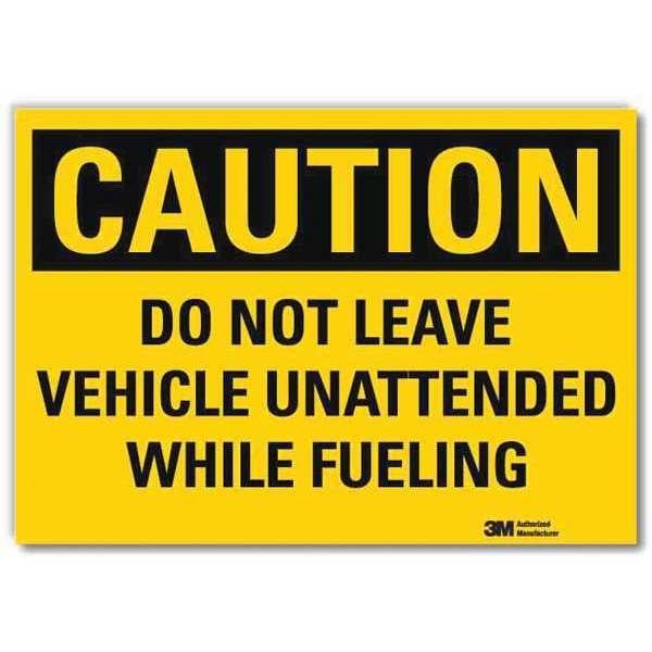 Safety Sign, Vertical Rectangle, Number of Printed Sides 1, English, Sign Format Traditional OSHA, Sign Legend Do Not Leave Vehicle Unattended While Fueling, Sign Legend Background Color Yellow, Sign Legend Style Text